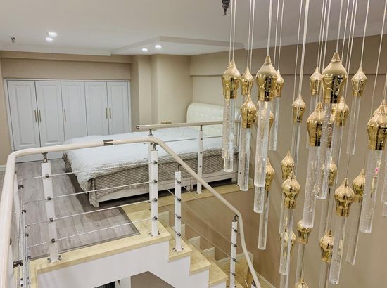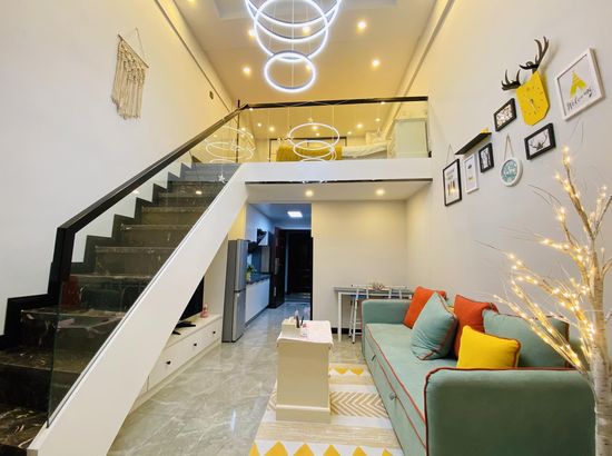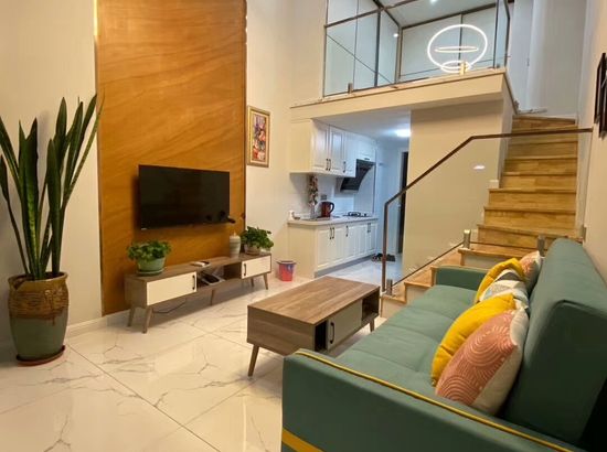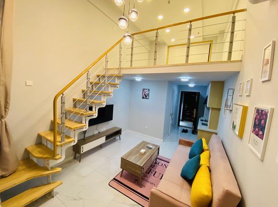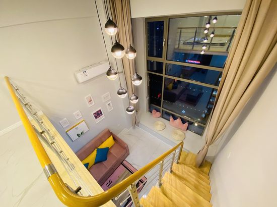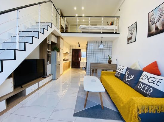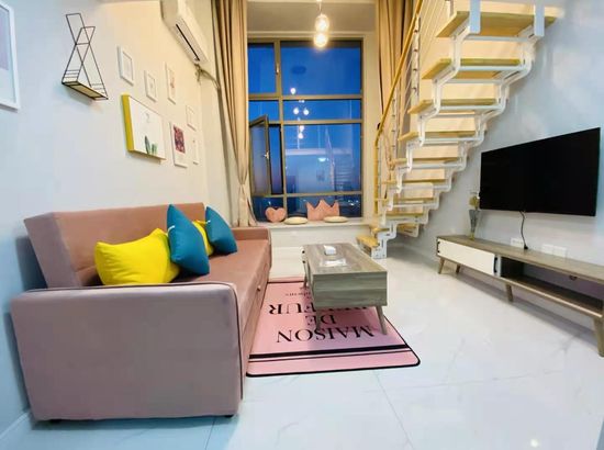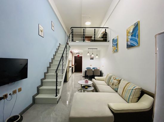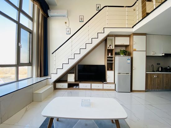 酒店简介 公寓位置在大润发旁边的兴宫中街B座公寓,门口就有公交车,方便打车。葫芦岛站打车约5分钟,葫芦岛北站打车约20分钟都可到达。 在市区的中心繁华地带,离葫芦古镇,313海边,龙湾公园,等各景点都很近,去哪里都很方便,附近有早市和大型超市。 Loft公寓上下面积70平,整体设计简约又不失格调,有夏普电视,科勒卫浴,中央空调,超大沙发床,榻榻米飘窗,还能做饭,适合情侣也适合一家多人度假,给你舒适的生活体验。公寓位置在大润发旁边的兴宫中街B座公寓,门口就有公交车,方便打车。葫芦岛站打车约5分钟,葫芦岛北站打车约20分钟都可到达。 在市区的中心繁华地带,离葫芦古镇,313海边,龙湾公园,等各景点都很近,去哪里都很方便,附近有早市和大型超市。 Loft公寓上下面积70平,整体设计简约又不失格调,有夏普电视,科勒卫浴,中央空调,超大沙发床,榻榻米飘窗,还能做饭,适合情侣也适合一家多人度假,给你舒适的生活体验。