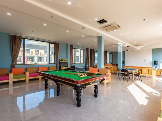 酒店简介 欢迎大家来到我们的团建民宿,这里不仅有室内的KTV,桌球,麻将,游戏机等娱乐设备,还有室外的篮球场,团建草地,泳池,攀岩,皮划艇,等活动。游玩吃住,团建会议,一站式的服务,方便省心。欢迎大家来到我们的团建民宿,这里不仅有室内的KTV,桌球,麻将,游戏机等娱乐设备,还有室外的篮球场,团建草地,泳池,攀岩,皮划艇,等活动。游玩吃住,团建会议,一站式的服务,方便省心。