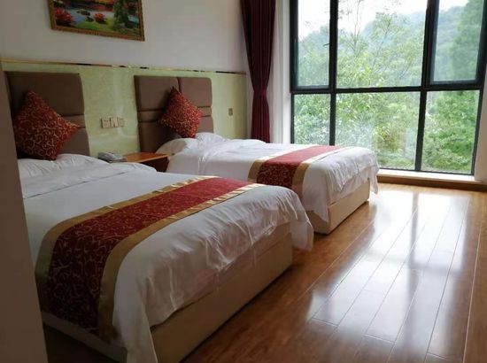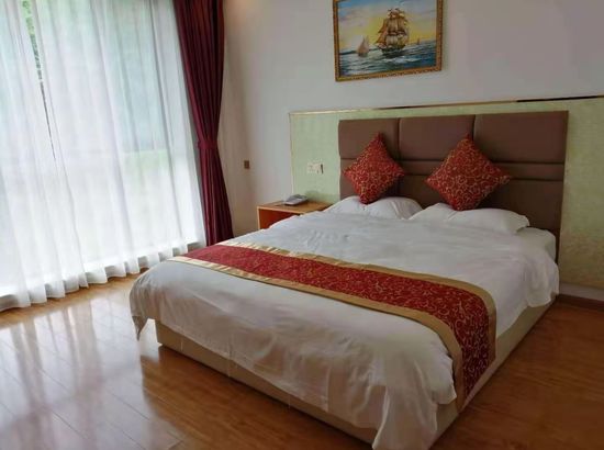 酒店简介 崇州山水缘休闲庄,位于成都市崇州市三郎镇益善村;周围餐厅云集,无论是文家小院还是樱花园都是品尝美食的不错选择;出门步行百米即可到达崇州半山温泉,既能感受优美的环境,又放松了身心,可谓一举两得。 宾馆被绿树所围绕,房间里宽敞整洁,透过偌大的落地窗,可以看到窗外美景;室内墙壁上挂有富有艺术感的壁画,显得雅致有格调;木制的地板和家具既环保又实用;独立的卫生间里贴有灰白的瓷砖,给人一种素雅的视觉体验;基础设施齐全;前台服务人员热情亲切。 经过一座城,寻觅一间房,宾馆将以热情的服务消去您的满身疲惫。"崇州山水缘休闲庄,位于成都市崇州市三郎镇益善村;周围餐厅云集,无论是文家小院还是樱花园都是品尝美食的不错选择;出门步行百米即可到达崇州半山温泉,既能感受优美的环境,又放松了身心,可谓一举两得。 宾馆被绿树所围绕,房间里宽敞整洁,透过偌大的落地窗,可以看到窗外美景;室内墙壁上挂有富有艺术感的壁画,显得雅致有格调;木制的地板和家具既环保又实用;独立的卫生间里贴有灰白的瓷砖,给人一种素雅的视觉体验;基础设施齐全;前台服务人员热情亲切。 经过一座城,寻觅一间房,宾馆将以热情的服务消去您的满身疲惫。"