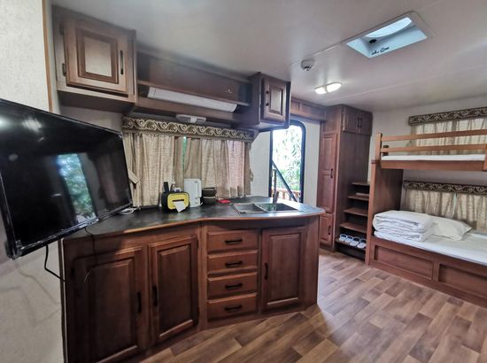 酒店简介 龙虎山云上清旅居营地位于江西省鹰潭市素有“中国道教第一镇”的上清古镇旁。所在地龙虎山风景名胜区是中国第八处世界自然遗产,世界地质公园、国家自然文化双遗产、国家5A级旅游景区、全国重点文物保护单位。云上清龙虎山旅居营地近3公里范围内有天师府、上清宫、圣井山、天门山等旅游景区。云·上清龙虎山旅居营地是中国文化传媒集团携手海南云宿旅游发展集团有限公司打造的以道法养生为主题的房车旅居项目,也是鹰潭市政府大力扶持的以“文、旅、养、研、体”融合的示范基地,营地占地面积75.6亩,设有接待中心、露天咖啡吧、露天烧烤、商品部、儿童游乐园等场所。营地设计89辆房车(目前29辆),自驾房车泊位18个,每辆房车均按一车一庭院建造,庭院内有草坪、亭台、桌椅、烧烤架等设备。房车置于风景迤逦的环境中,为休闲度假、亲子、养生、修禅提供理想之境。龙虎山云上清旅居营地位于江西省鹰潭市素有“中国道教第一镇”的上清古镇旁。所在地龙虎山风景名胜区是中国第八处世界自然遗产,世界地质公园、国家自然文化双遗产、国家5A级旅游景区、全国重点文物保护单位。云上清龙虎山旅居营地近3公里范围内有天师府、上清宫、圣井山、天门山等旅游景区。云·上清龙虎山旅居营地是中国文化传媒集团携手海南云宿旅游发展集团有限公司打造的以道法养生为主题的房车旅居项目,也是鹰潭市政府大力扶持的以“文、旅、养、研、体”融合的示范基地,营地占地面积75.6亩,设有接待中心、露天咖啡吧、露天烧烤、商品部、儿童游乐园等场所。营地设计89辆房车(目前29辆),自驾房车泊位18个,每辆房车均按一车一庭院建造,庭院内有草坪、亭台、桌椅、烧烤架等设备。房车置于风景迤逦的环境中,为休闲度假、亲子、养生、修禅提供理想之境。